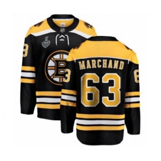 >Youth Boston Bruins #63 Brad Marchand Authentic Black Home Fanatics Branded Breakaway 2019 Stanley Cup Final Bound Hockey Jersey
