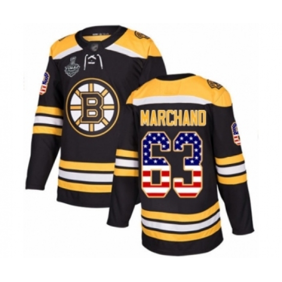Youth Boston Bruins #63 Brad Marchand Authentic Black USA Flag Fashion 2019 Stanley Cup Final Bound Hockey Jersey