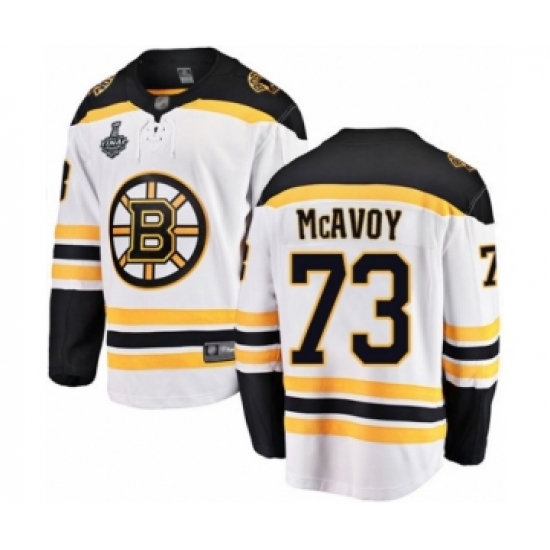 Youth Boston Bruins #73 Charlie McAvoy Authentic White Away Fanatics Branded Breakaway 2019 Stanley Cup Final Bound Hockey Jersey