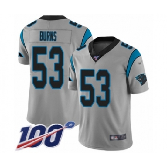 Men's Carolina Panthers #53 Brian Burns Silver Inverted Legend Limited 100th Season Football Jersey