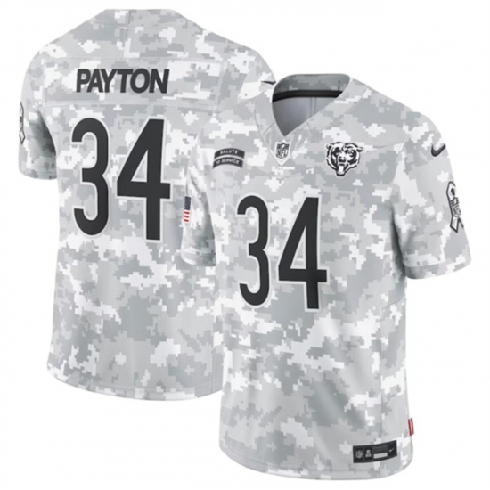 >Youth Chicago Bears #34 Walter Payton 2024 F U S E Arctic Camo Salute To Service Limited Stitched Football Jersey