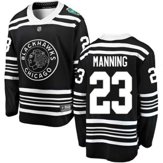>Youth Chicago Blackhawks #23 Brandon Manning Black 2019 Winter Classic Fanatics Branded Breakaway NHL Jersey