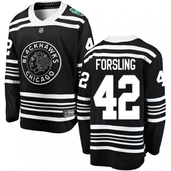 >Youth Chicago Blackhawks #42 Gustav Forsling Black 2019 Winter Classic Fanatics Branded Breakaway NHL Jersey