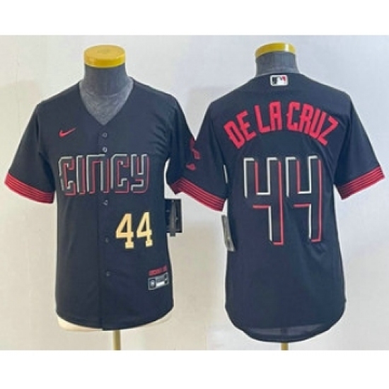 >Youth Cincinnati Reds #44 Elly De La Cruz Number Black 2023 City Connect Cool Base Stitched Jersey 1