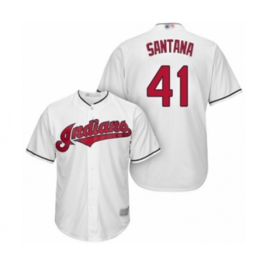 Youth Cleveland Indians #41 Carlos Santana Authentic White Home Cool Base Baseball Jersey