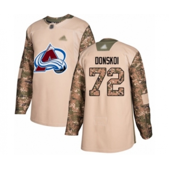 >Youth Colorado Avalanche #72 Joonas Donskoi Authentic Camo Veterans Day Practice Hockey Jersey