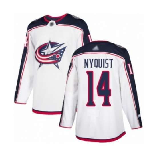 >Youth Columbus Blue Jackets #14 Gustav Nyquist Authentic White Away Hockey Jersey