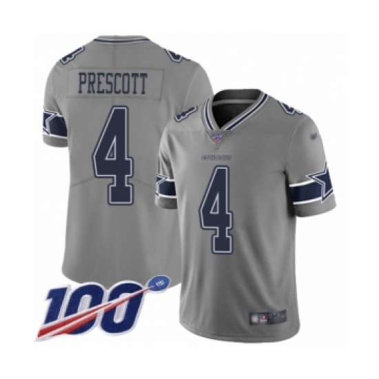 >Youth Dallas Cowboys #4 Dak Prescott Limited Gray Inverted Legend 100th Season Football Jersey
