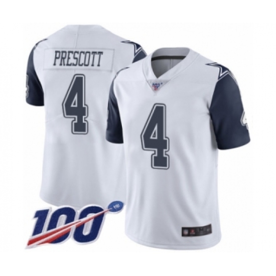 Youth Dallas Cowboys #4 Dak Prescott Limited White Rush Vapor Untouchable 100th Season Football Jersey