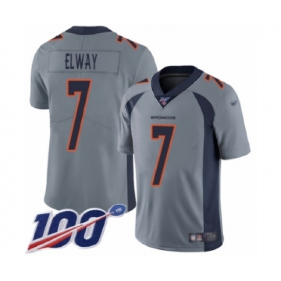 >Youth Denver Broncos #7 John Elway Limited Silver Inverted Legend 100th Season Football Jersey
