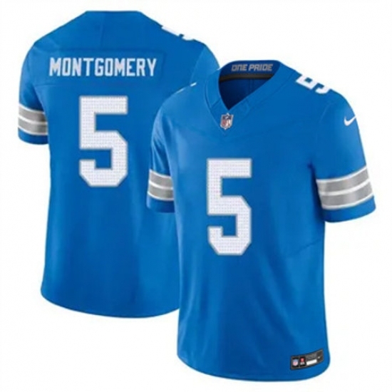 Men's Detroit Lions #5 David Montgomery Blue 2024 NFC North Champions 90th Anniversary F.U.S.E. Vapor Limited Stitched Jersey