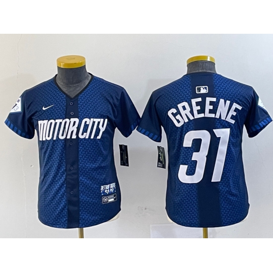 >Youth Detroit Tigers #31 Riley Greene 2024 Navy City Connect Cool Base Limited Stitched Jersey