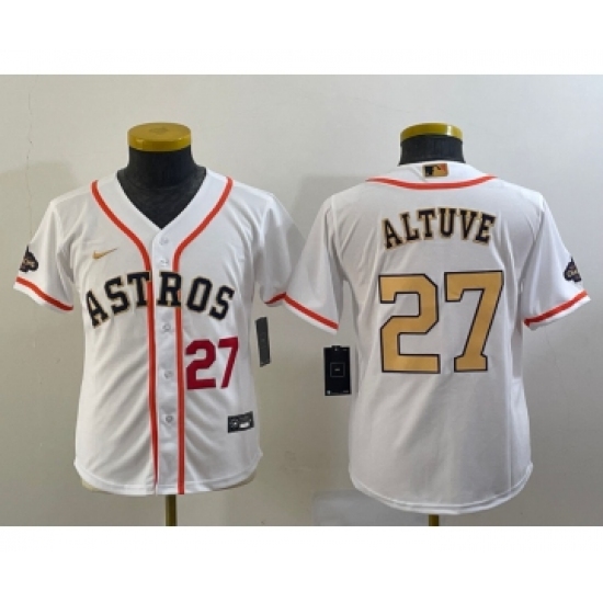 Youth Houston Astros #27 Jose Altuve 2023 White Gold World Serise Champions Cool Base Stitched Jersey