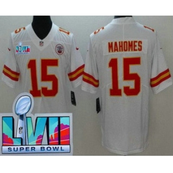 >Youth Kansas City Chiefs #15 Patrick Mahomes Limited White Super Bowl LVII Vapor Jersey