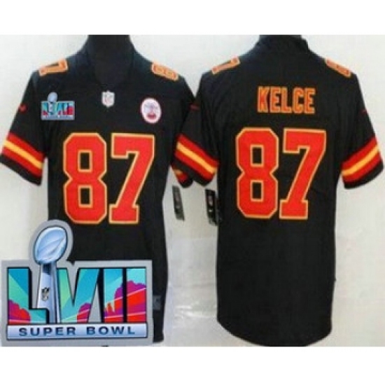 >Youth Kansas City Chiefs #87 Travis Kelce Limited Black Super Bowl LVII Vapor Jersey