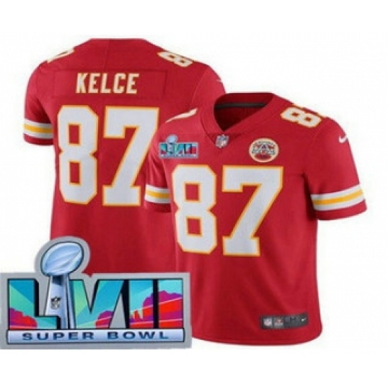 >Youth Kansas City Chiefs #87 Travis Kelce Limited Red Super Bowl LVII Vapor Jersey