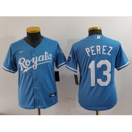 >Youth Kansas City Royals #13 Salvador Perez Light Blue Cool Base Stitched Jersey