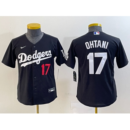 Youth Los Angeles Dodgers #17 Shohei Ohtani Number Black Turn Back The Clock Stitched Cool Base Jersey