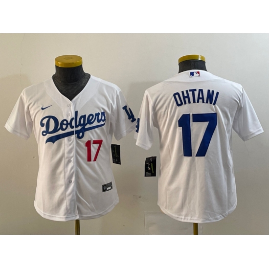 >Youth Los Angeles Dodgers #17 Shohei Ohtani Number White Stitched Cool Base Nike Jersey
