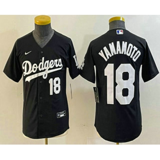 Youth Los Angeles Dodgers #18 Yoshinobu Yamamoto Number Black Turn Back The Clock Stitched Cool Base Jersey2