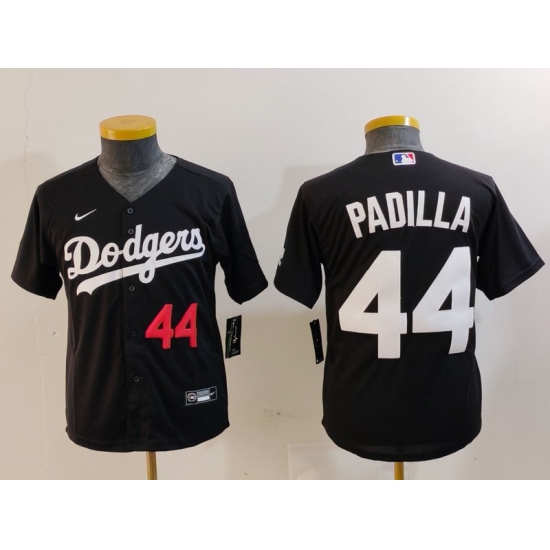 >Youth Los Angeles Dodgers #44 Vicente Padilla Number Black Cool Base Stitched Jersey