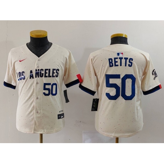 Youth Los Angeles Dodgers #50 Mookie Betts Number Cream 2024 City Connect Limited Stitched Jerseys