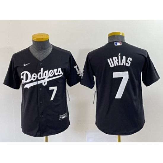 >Youth Los Angeles Dodgers #7 Julio Urias Number Black Turn Back The Clock Stitched Cool Base Jersey