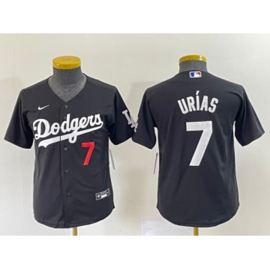 >Youth Los Angeles Dodgers #7 Julio Urias Number Black Turn Back The Clock Stitched Cool Base Jersey2