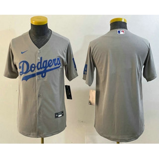>Youth Los Angeles Dodgers Blank Gray Cool Base Jersey
