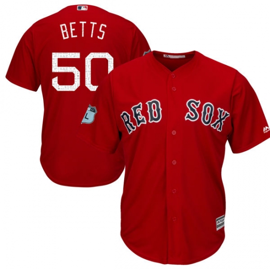 Home>MLB>Boston Red Sox>Mookie Betts>Youth Majestic Boston Red Sox #50 Mookie Betts Authentic Scarlet 2017 Spring Training Cool Base MLB Jersey