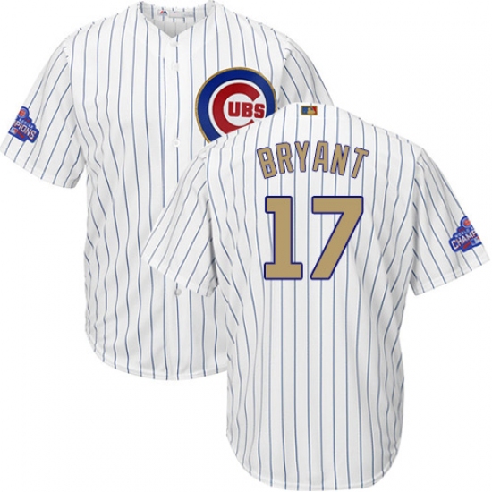 Home>MLB>Chicago Cubs>Kris Bryant>Youth Majestic Chicago Cubs #17 Kris Bryant Authentic White 2017 Gold Program Cool Base MLB Jersey