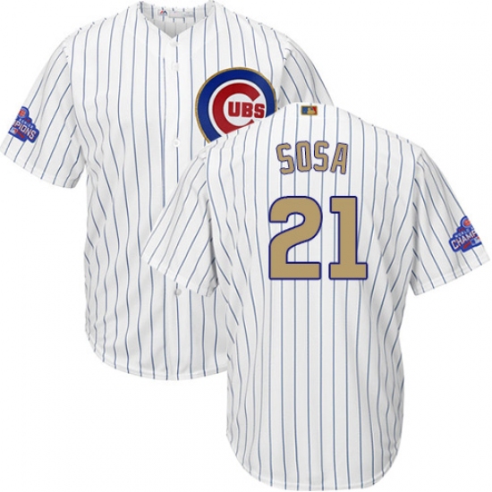 Home>MLB>Chicago Cubs>Sammy Sosa>Youth Majestic Chicago Cubs #21 Sammy Sosa Authentic White 2017 Gold Program Cool Base MLB Jersey