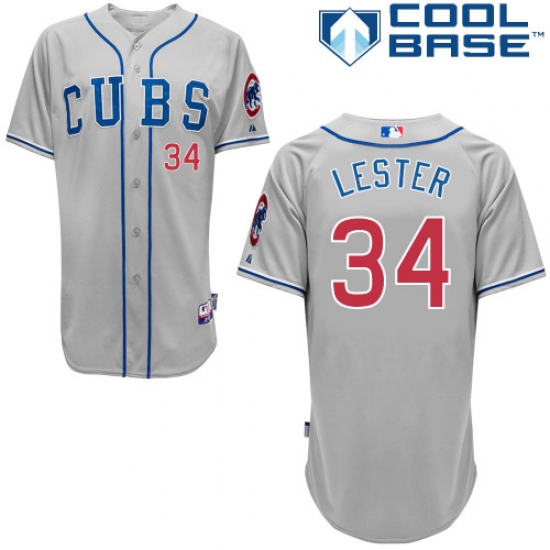 Home>MLB>Chicago Cubs>Jon Lester>Youth Majestic Chicago Cubs #34 Jon Lester Replica Grey Alternate Road Cool Base MLB Jersey