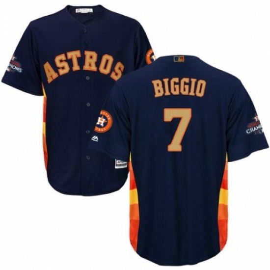 >Youth Majestic Houston Astros #7 Craig Biggio Authentic Navy Blue Alternate 2018 Gold Program Cool Base MLB Jersey