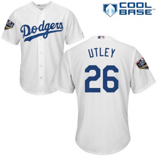 Youth Majestic Los Angeles Dodgers #26 Chase Utley Authentic White Home Cool Base 2018 World Series MLB Jersey