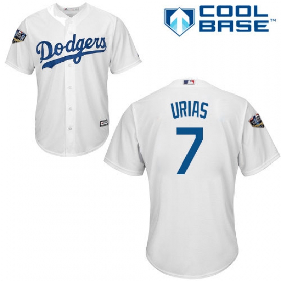 Youth Majestic Los Angeles Dodgers #7 Julio Urias Authentic White Home Cool Base 2018 World Series MLB Jersey