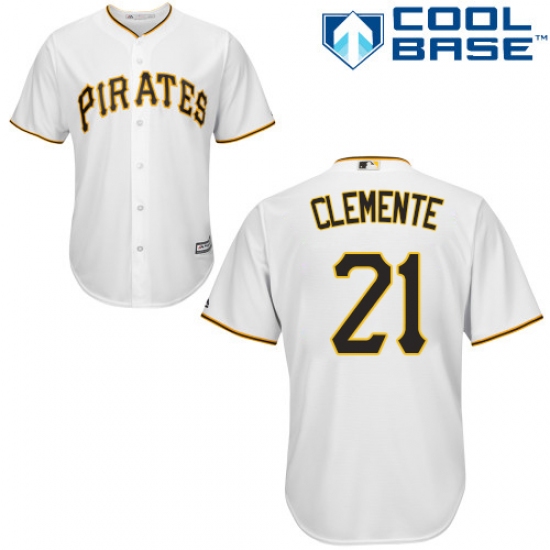 Youth Majestic Pittsburgh Pirates #21 Roberto Clemente Replica White Home Cool Base MLB Jersey