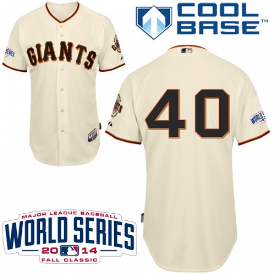 Youth Majestic San Francisco Giants #40 Madison Bumgarner Replica Cream Home Cool Base 2014 World Series Patch MLB Jersey