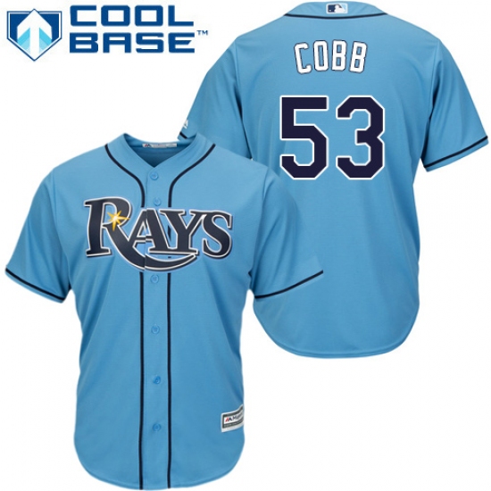 Home>MLB>Tampa Bay Rays>Alex Cobb>Youth Majestic Tampa Bay Rays #53 Alex Cobb Authentic Light Blue Alternate 2 Cool Base MLB Jersey