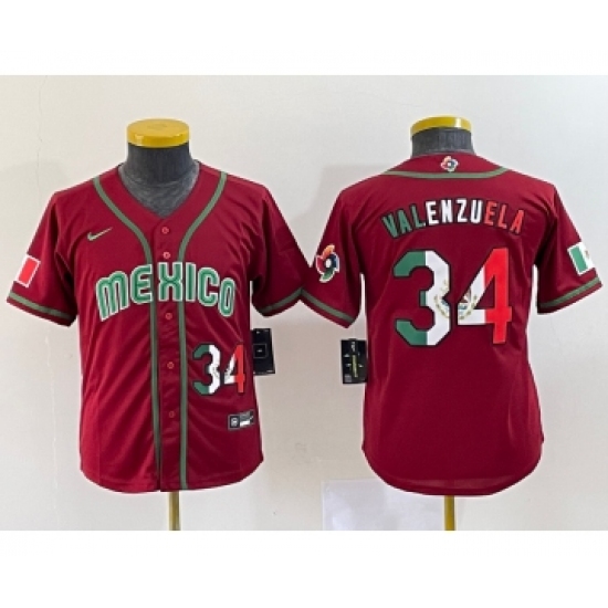 >Youth Mexico Baseball #34 Fernando Valenzuela 2023 Red World Classic Stitched Jersey 2