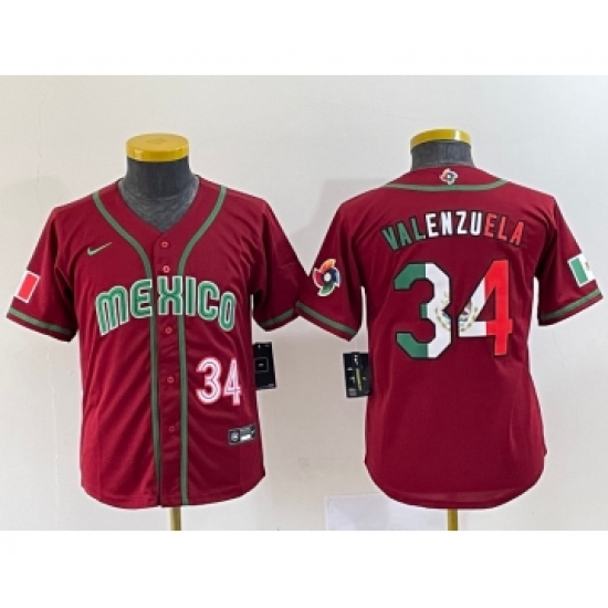 >Youth Mexico Baseball #34 Fernando Valenzuela 2023 Red World Classic Stitched Jersey 3
