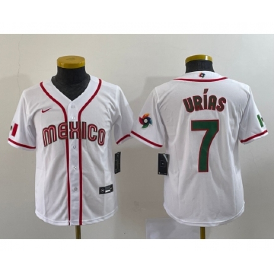 Youth Mexico Baseball #7 Julio Urias 2023 Red World Baseball Classic Stitched Jersey1