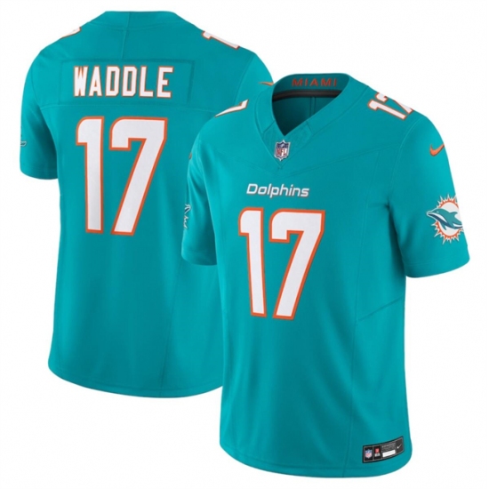>Youth Miami Dolphins #17 Jaylen Waddle Aqua 2023 F.U.S.E Vapor Limited Football Stitched Jersey
