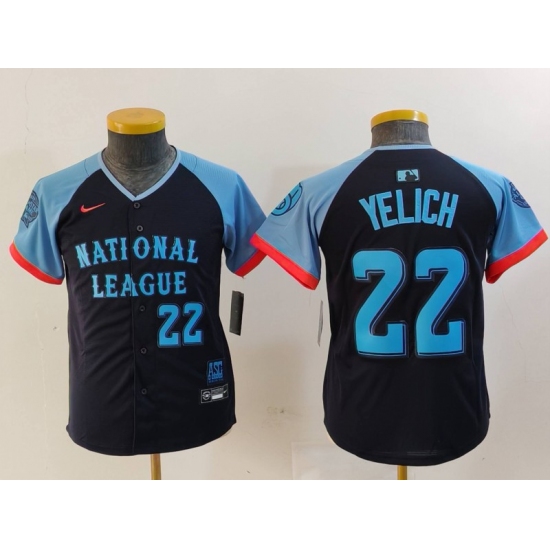 >Youth Milwaukee Brewers #22 Christian Yelich Number Navy 2024 All Star Limited Stitched Jerseys