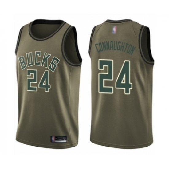 >Youth Milwaukee Bucks #24 Pat Connaughton Swingman Green Salute to Service Basketball Jersey