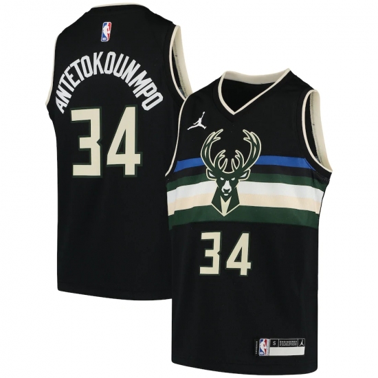 Youth Milwaukee Bucks #34 Giannis Antetokounmpo Jordan Brand Black 2020-21 Swingman Player Jersey