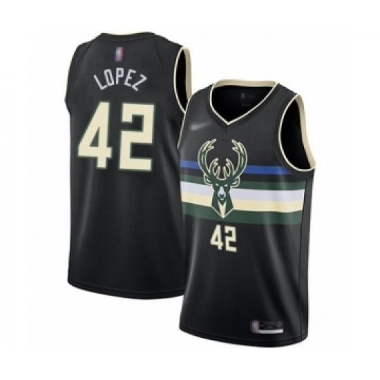 >Youth Milwaukee Bucks #42 Robin Lopez Swingman Black Finished Basketball Jersey - Statement Edition