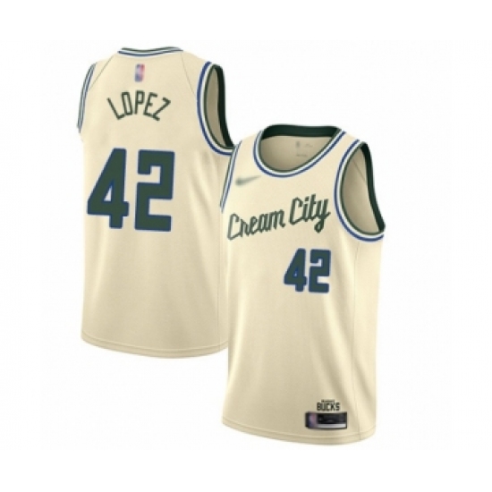 >Youth Milwaukee Bucks #42 Robin Lopez Swingman Cream Basketball Jersey - 2019 20 City Edition