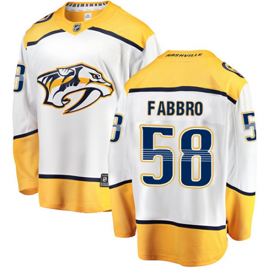 Home>NHL>Nashville Predators>Dante Fabbro>Youth Nashville Predators #58 Dante Fabbro Fanatics Branded White Away Breakaway NHL Jersey
