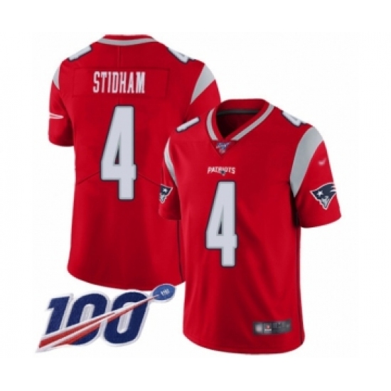 >Youth New England Patriots #4 Jarrett Stidham Limited Red Inverted Legend 100th Season Football Jersey